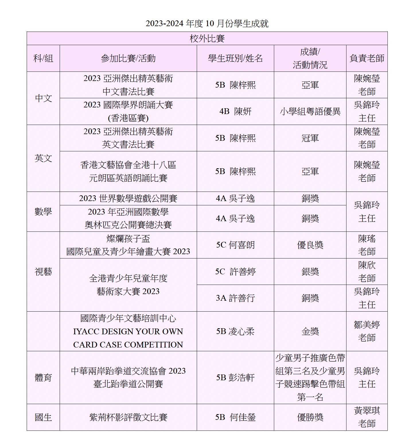 2023-2024 年度5月份學生成就