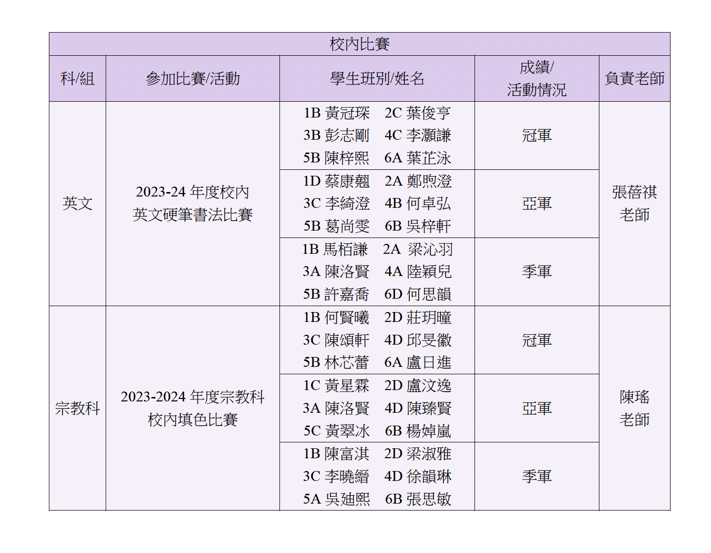 2023-2024 年度6月份學生成就