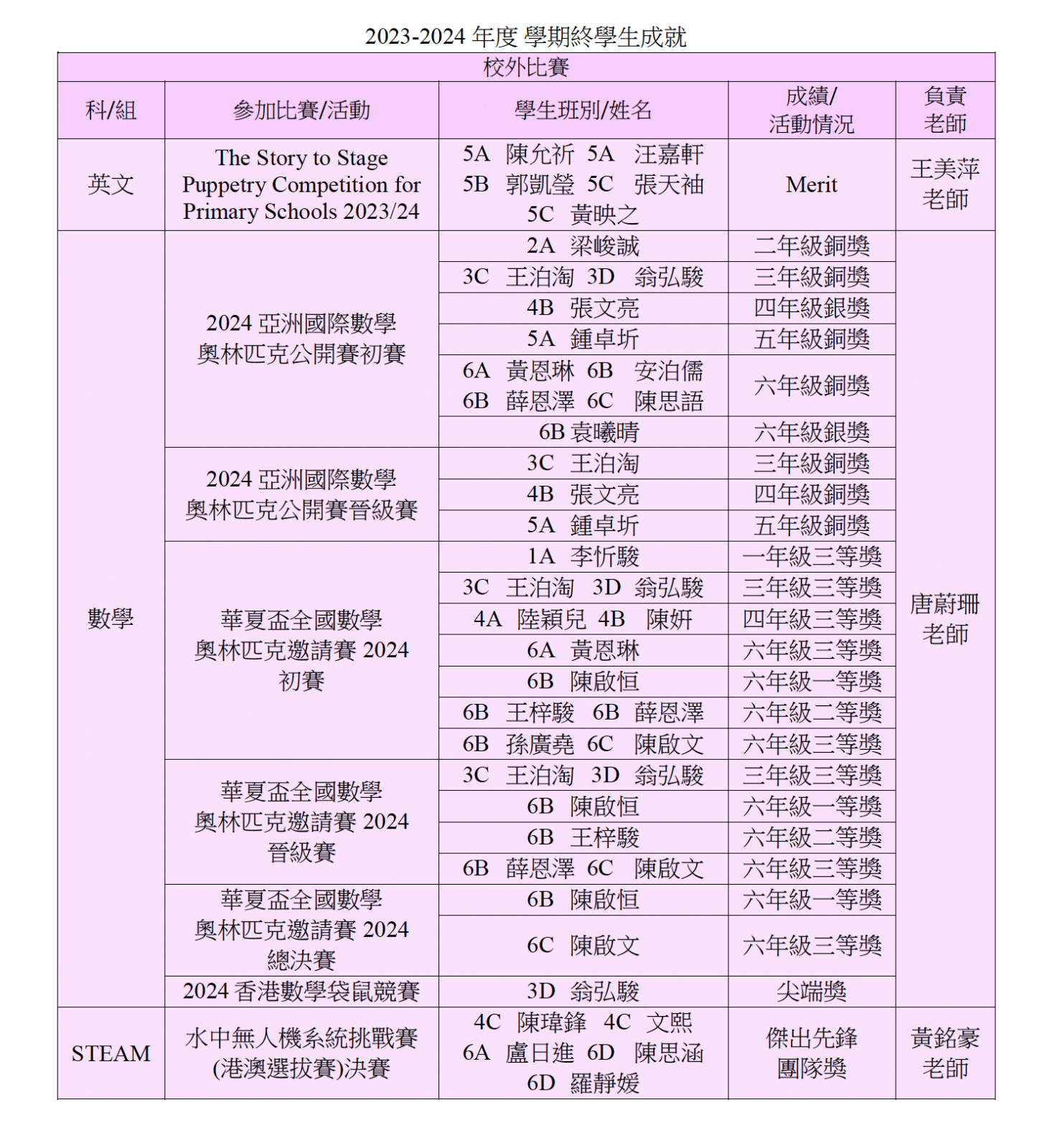2023-2024 年度6月份學生成就