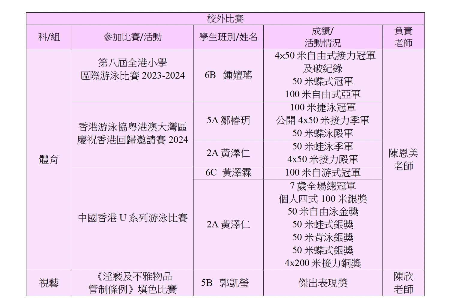 獲獎消息(校外及校內)