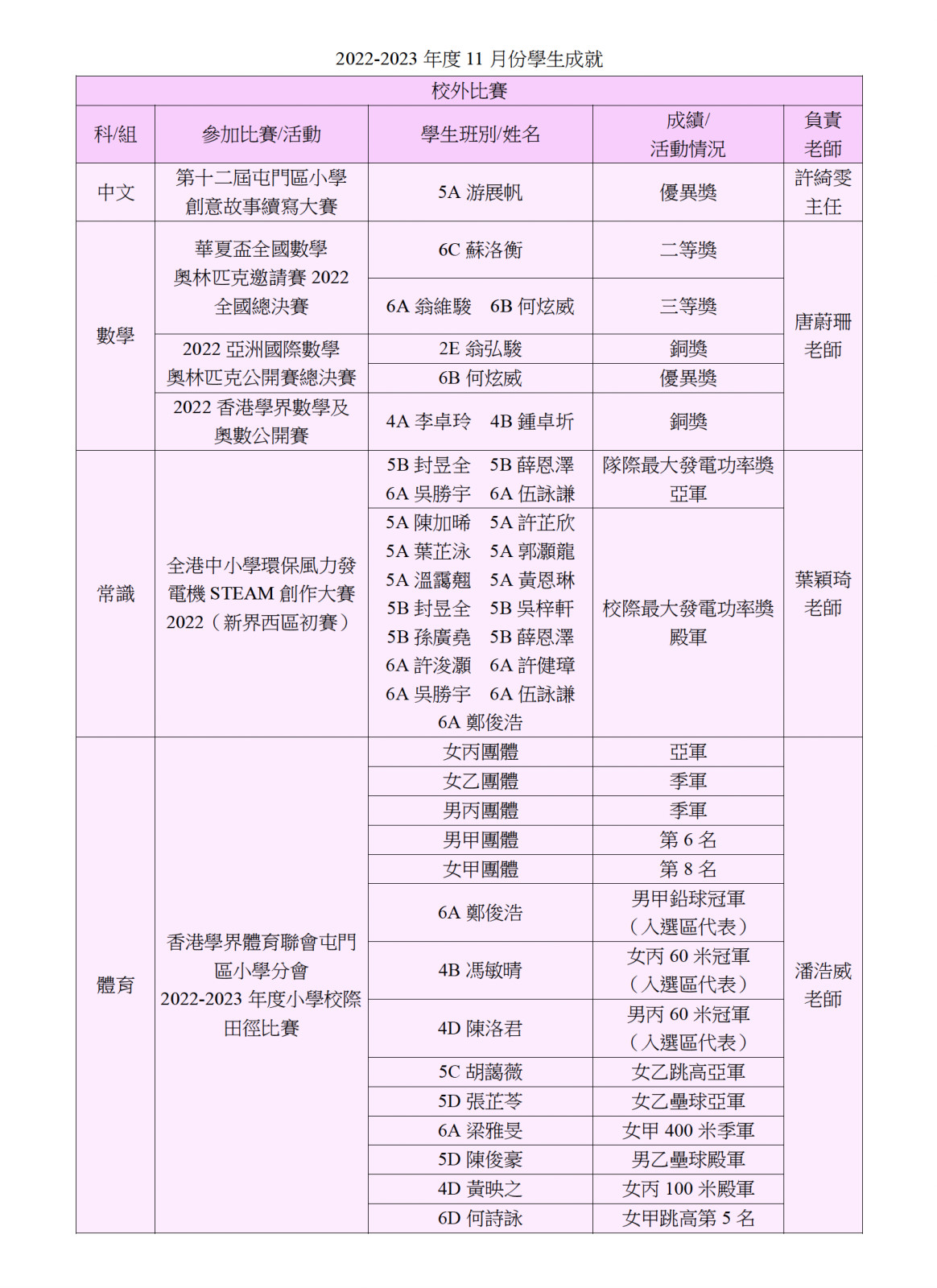22-23年度 11月份學生成就