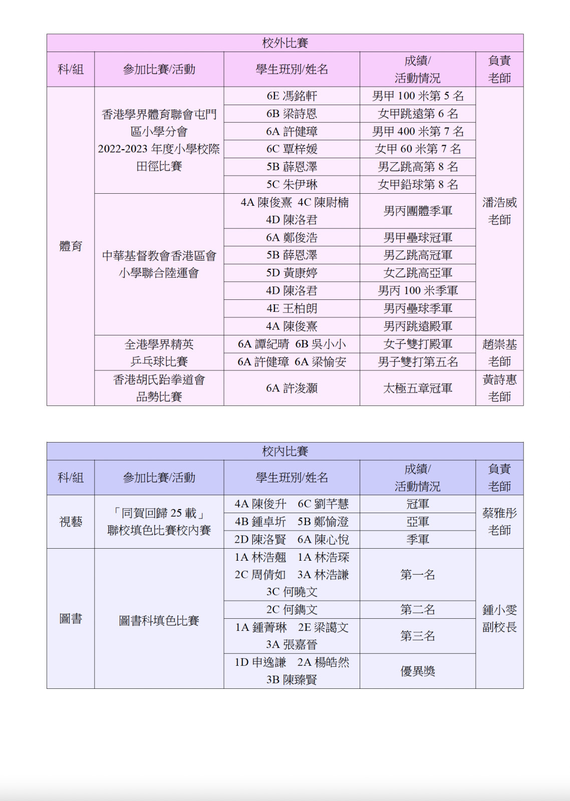 獲獎消息(校外及校內)