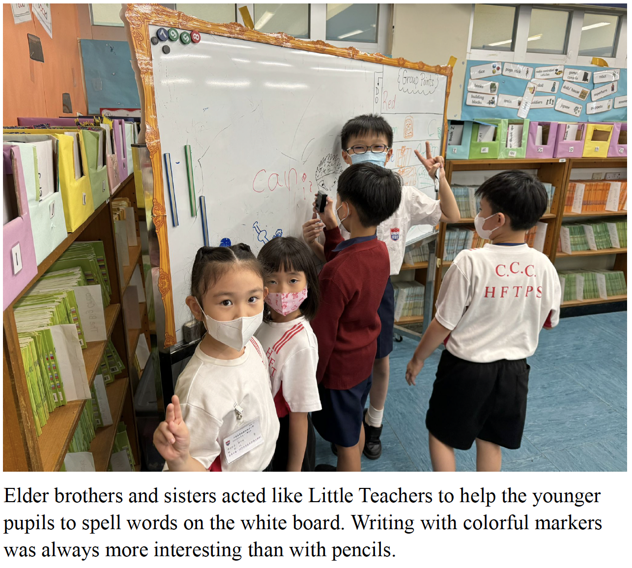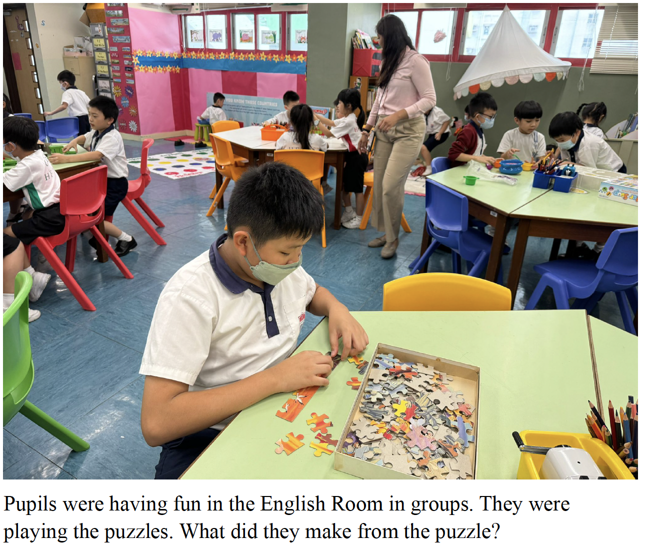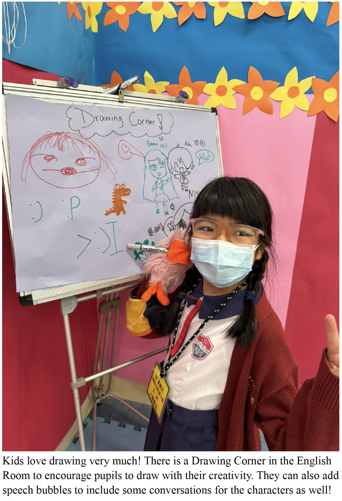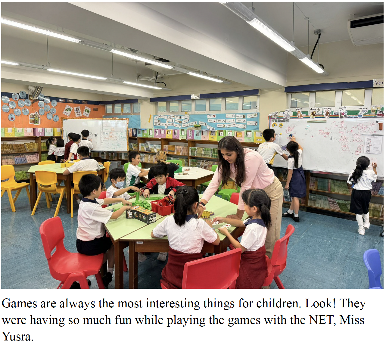 During the Happy Moment at recesses, pupils are eager to enter the English Room. They can play various kinds of games with the native-speaking teachers (NETs) there.