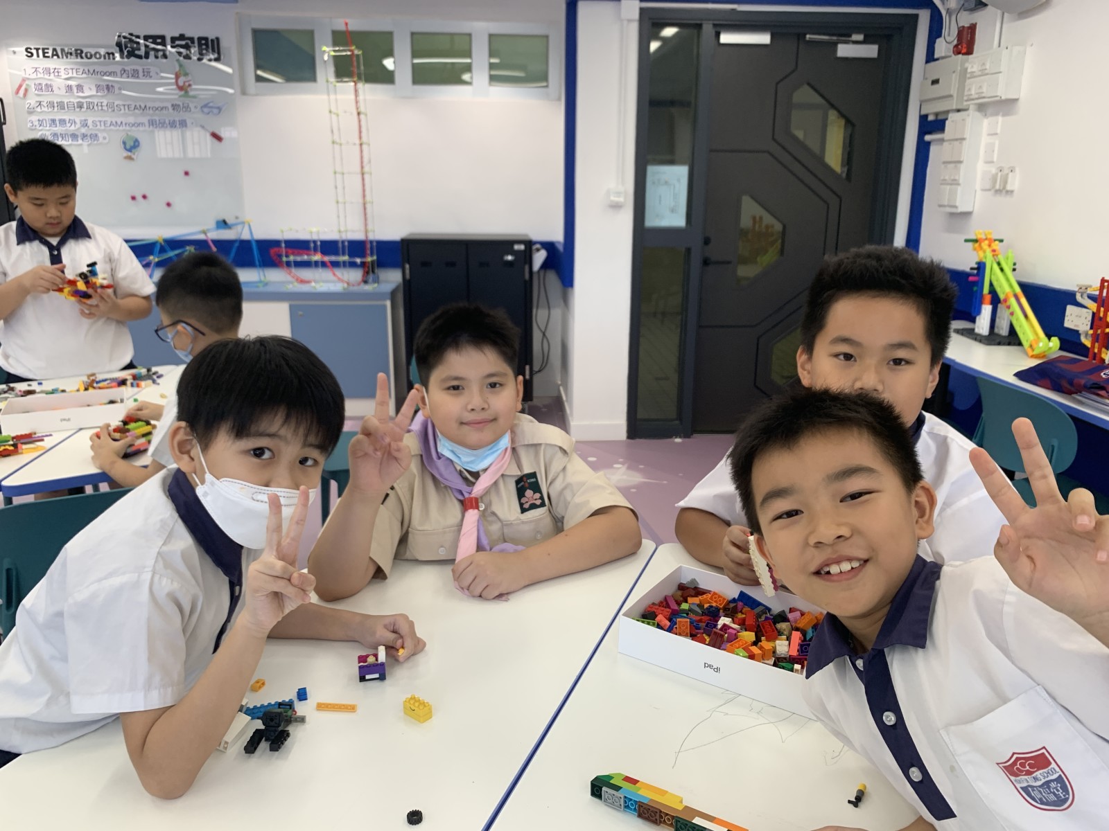 學生在Steam room砌Lego 和Gigo,發揮無限創意,本年度新開設的Steam room吸引了大量學生排隊進入,體驗動手砌玩的樂趣。