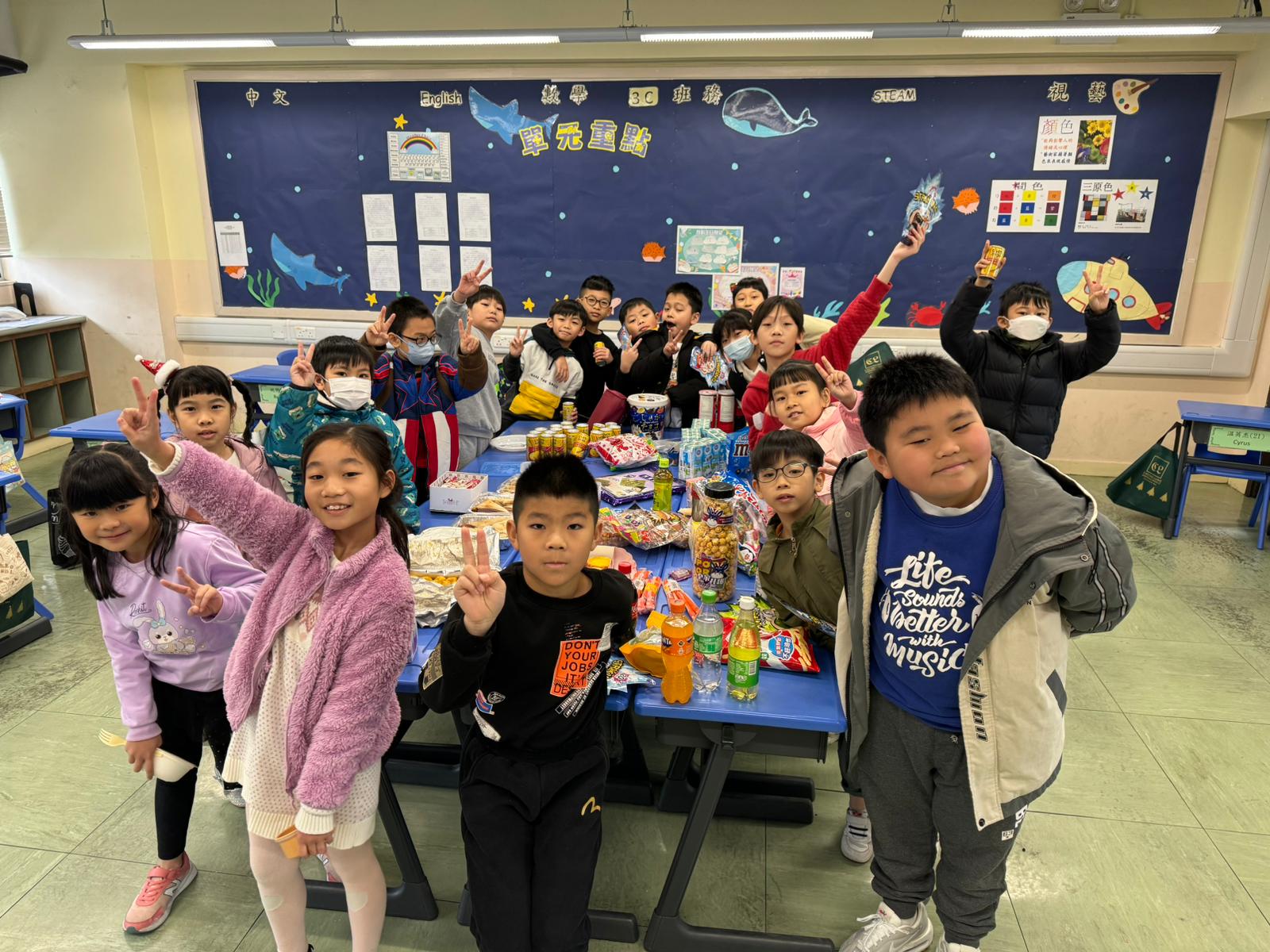 除了聖誕崇拜外,各班亦在課室裏聯歡,開大食會及玩集體遊戲,很高興呢!