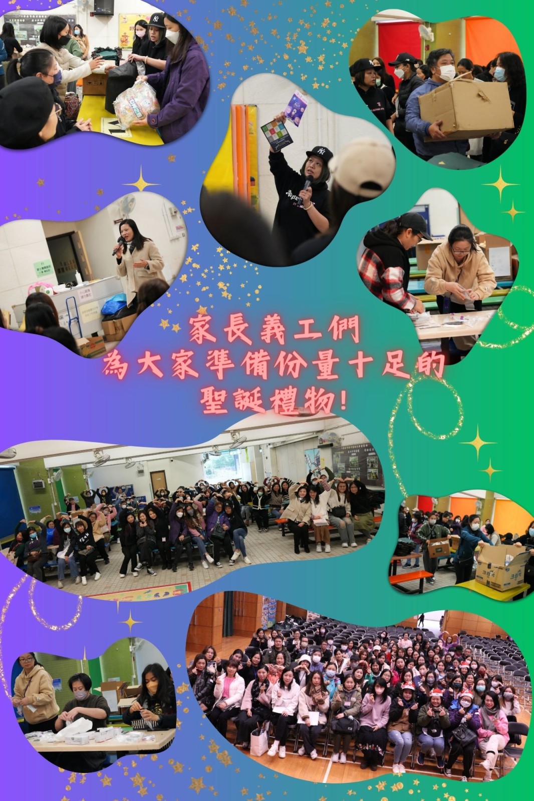 家教會帶領70名家長義工走入校園進行「暖暖愛心聖誕送祝福」活動,將愛傳遍每一角落,將温暖帶給每一位「何小」乖寶寶。除與教會龍門堂一起送贈大大份聖誕物外,更邀請深受小朋友歡迎的雪人爸爸、恐龍爸爸一起陪大家過聖誕,度過一個暖烘烘的聖誕崇拜日!