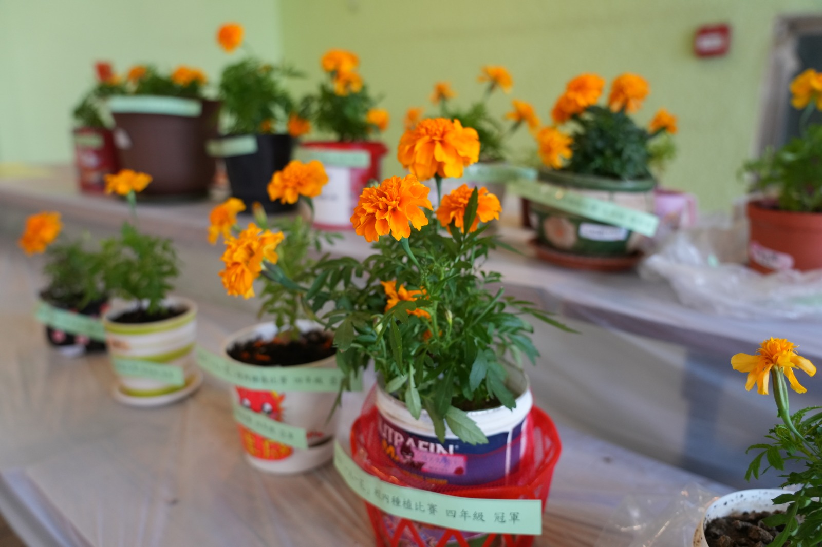 今年學校繼續參加康樂及文化事務署舉辦的「一人一花」種植計劃,藉著種植比賽讓學生學習種植萬壽菊,培養責任感,體驗種植的樂趣,對綠化環境獻出一分力。種植花苗有成功也有失敗,但過程中同學們都用心種植,積極參與,實在值得讚賞! 一齊來祝賀一至六年級獲獎的同學啦!
