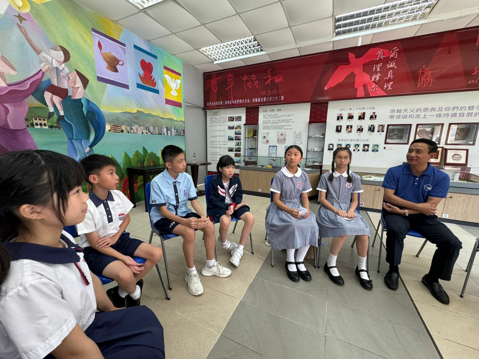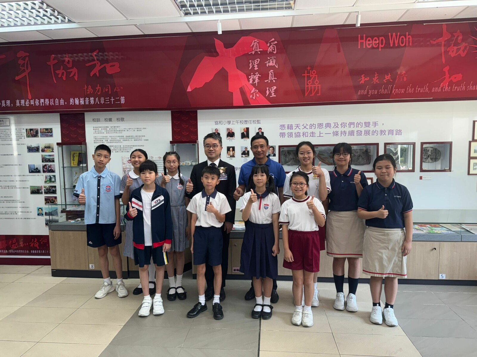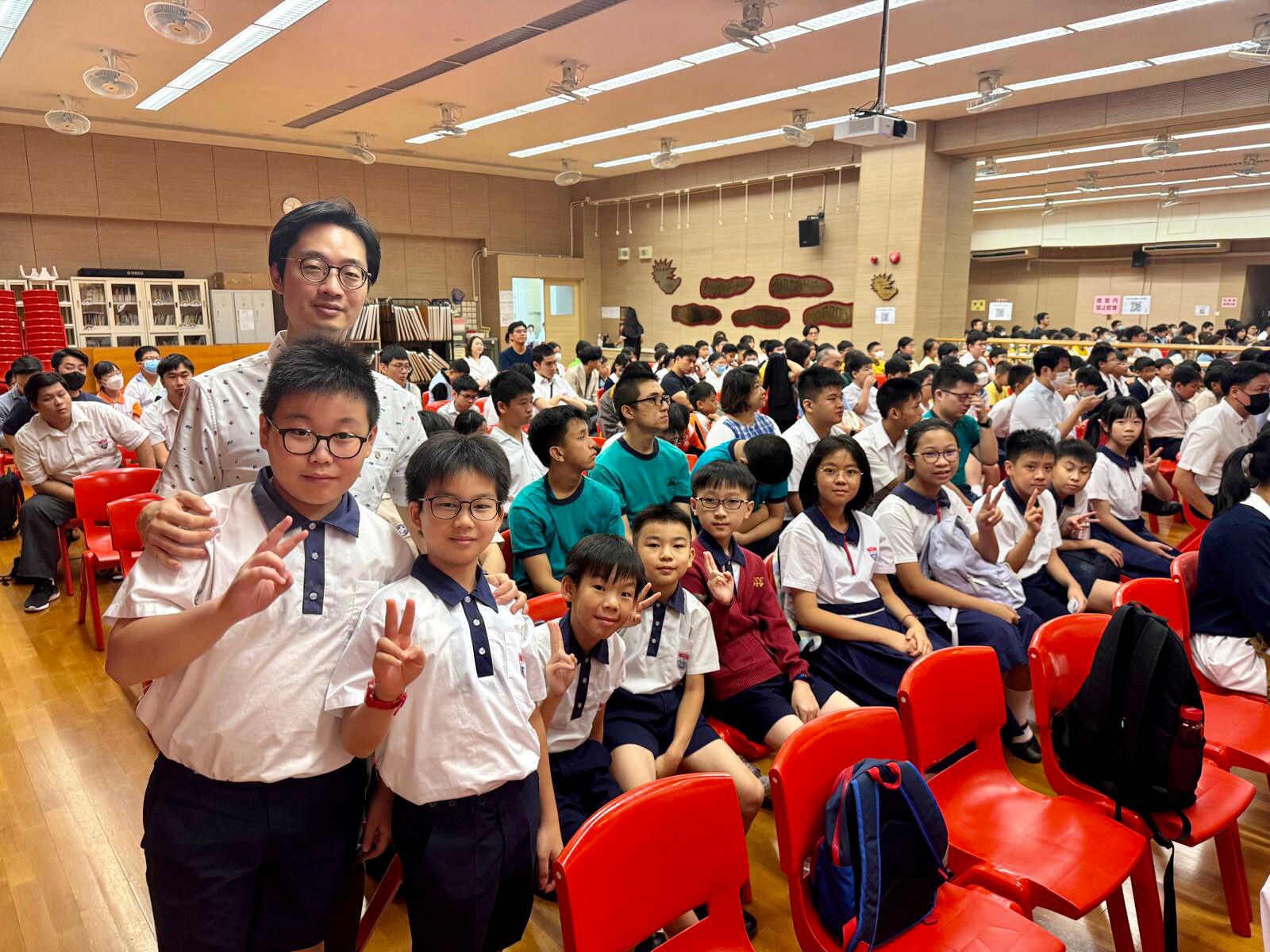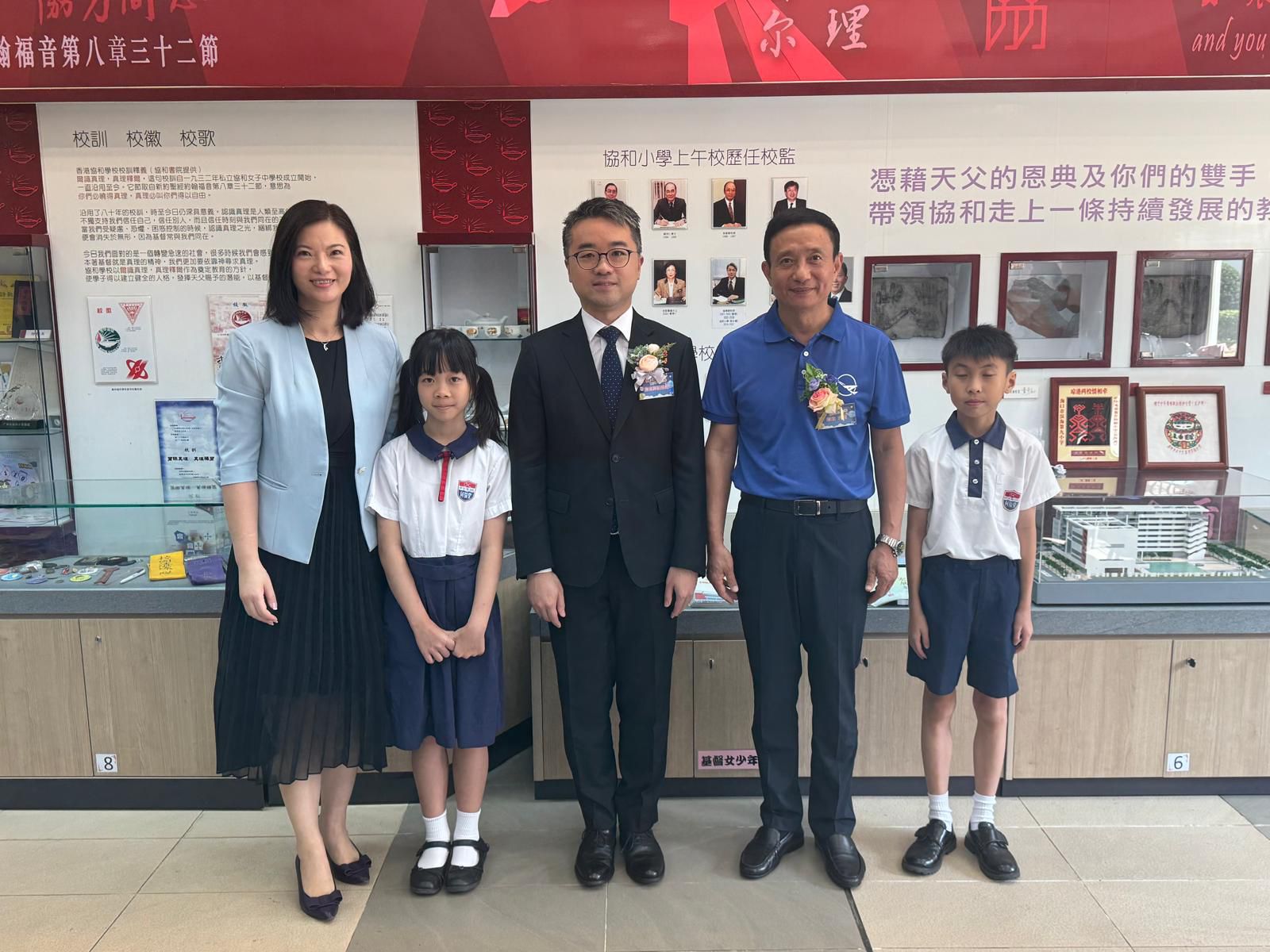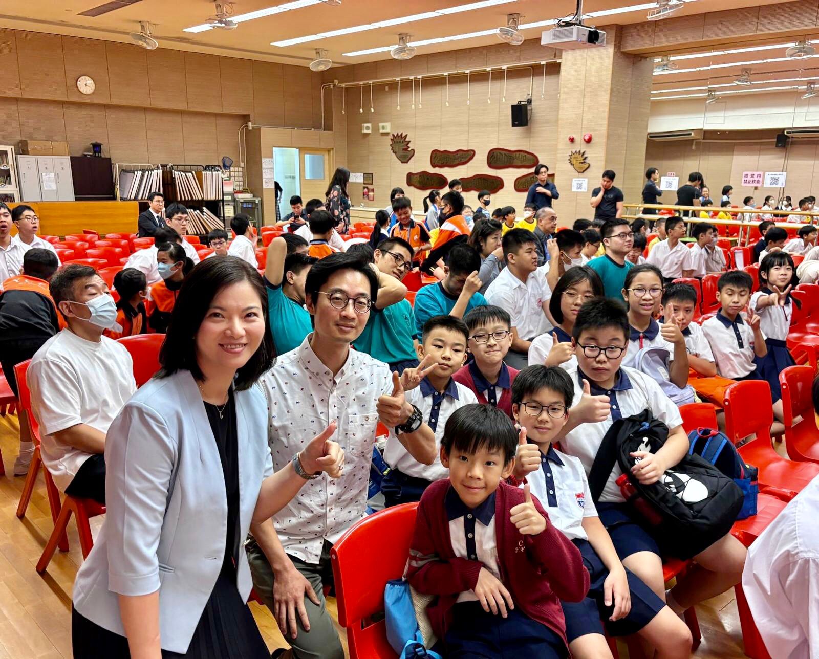 本校10位五年級同學獲邀到中華基督教會協和小學(長沙灣)參與活動。其中5B班的鍾淳曦和羅潁趣更是榮幸,他們能與陳大校近距離接觸,進行互動。2位同學向陳大校提問、進一步暸解航天員和太空探索。他們更在尹校長陪同下與陳全大校、教育局施副局長留下合影。
