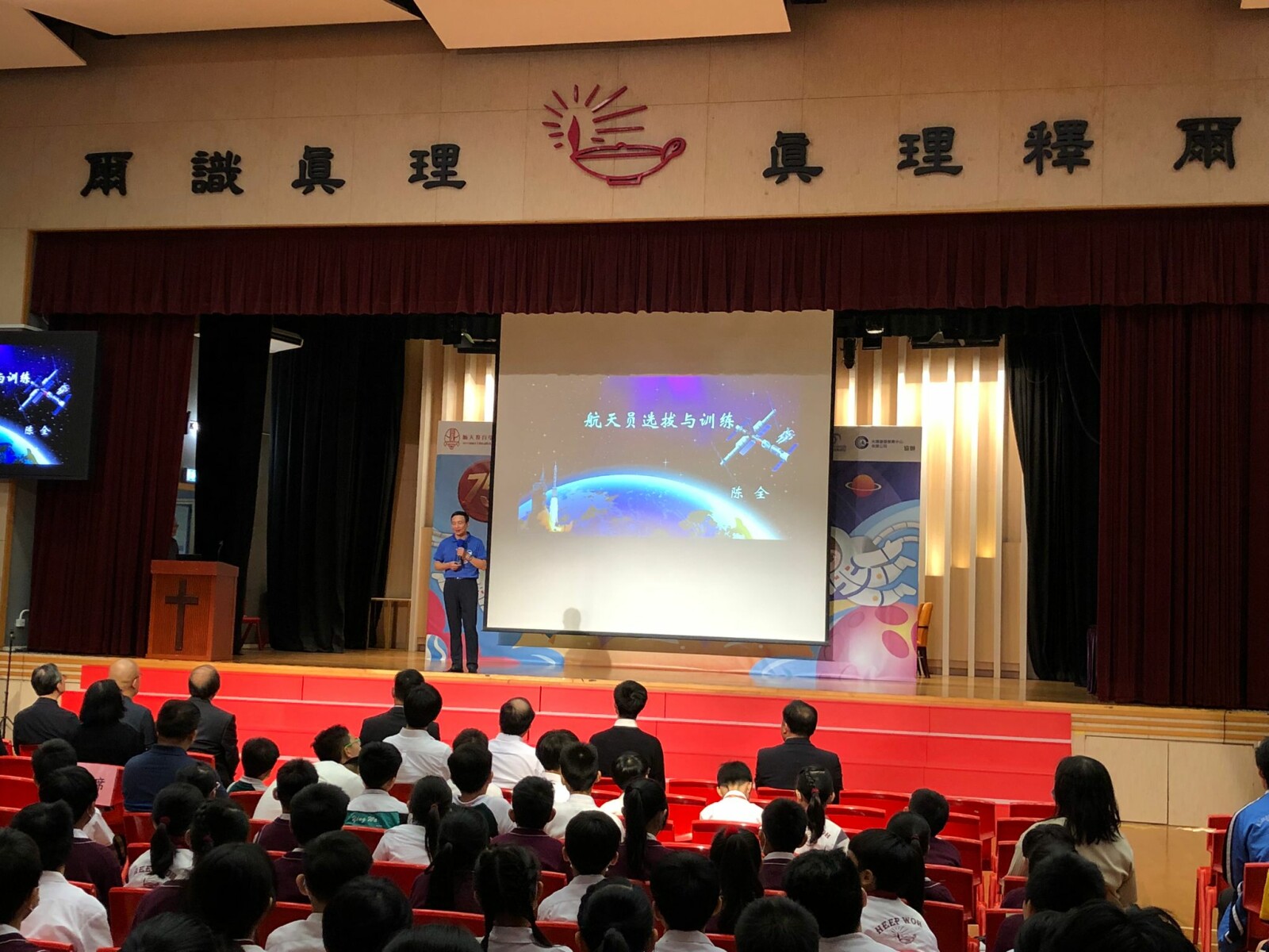 航天教育學校聯網邀得我國首批航天員、航太專家陳全大校與香港學生進行專題講座,講題為航天員選拔與訓練。