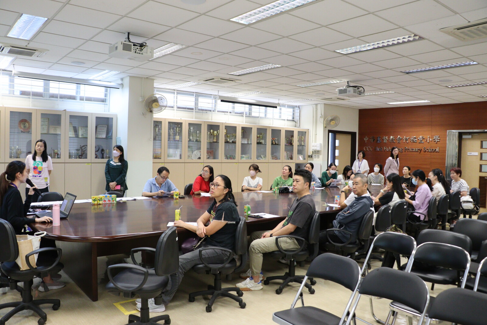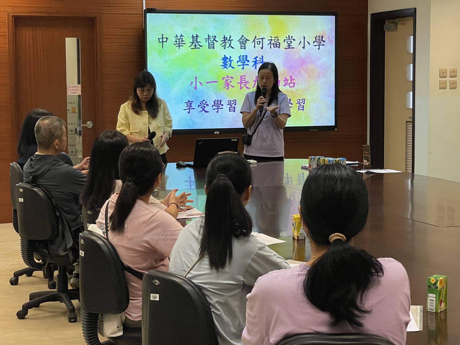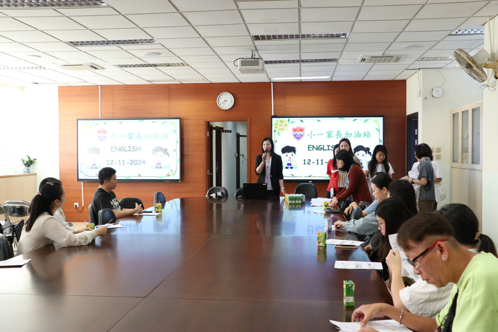 老師在會上分享平日小朋友的學習進度,教導家長如何教導小朋友,讓同學學得更好