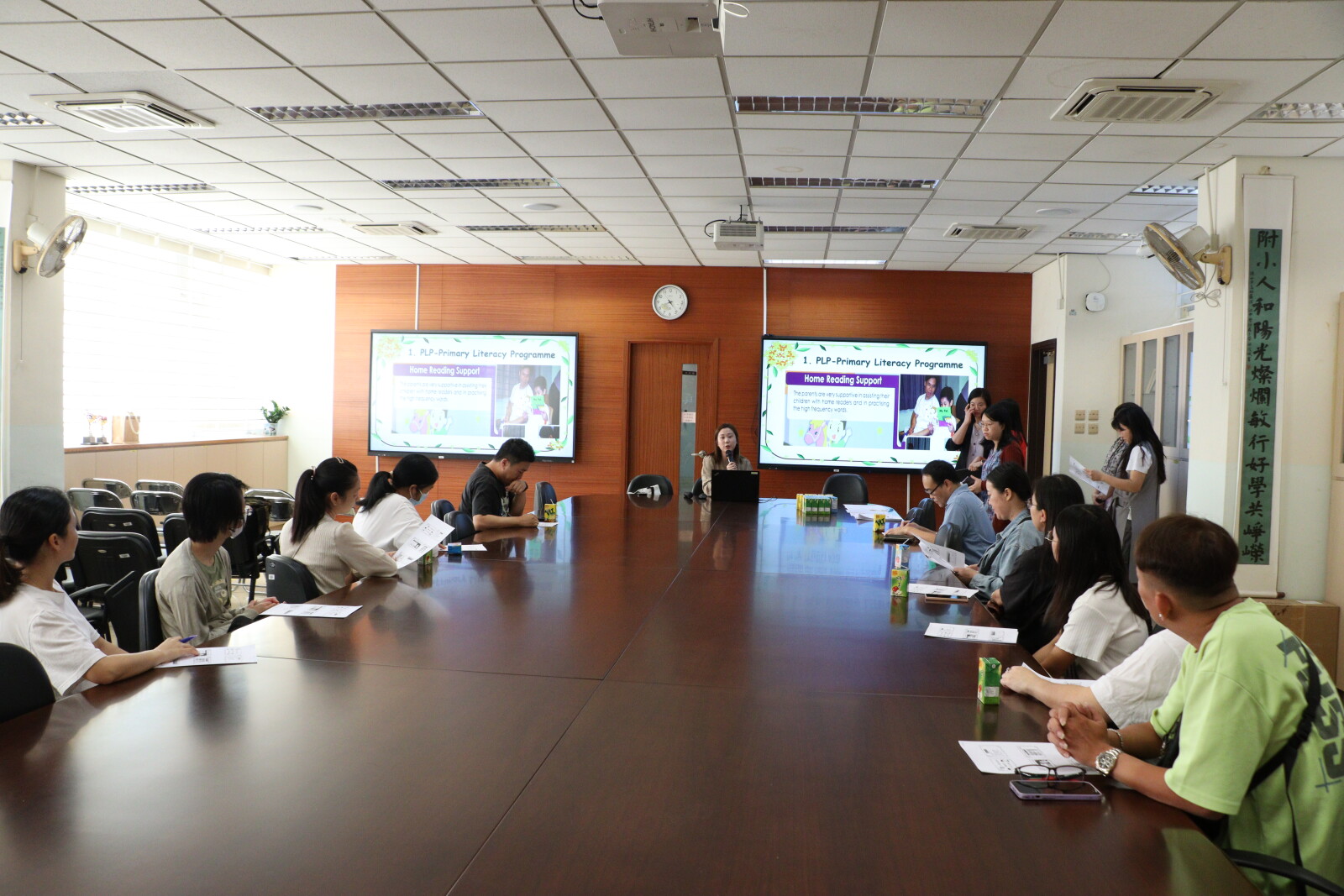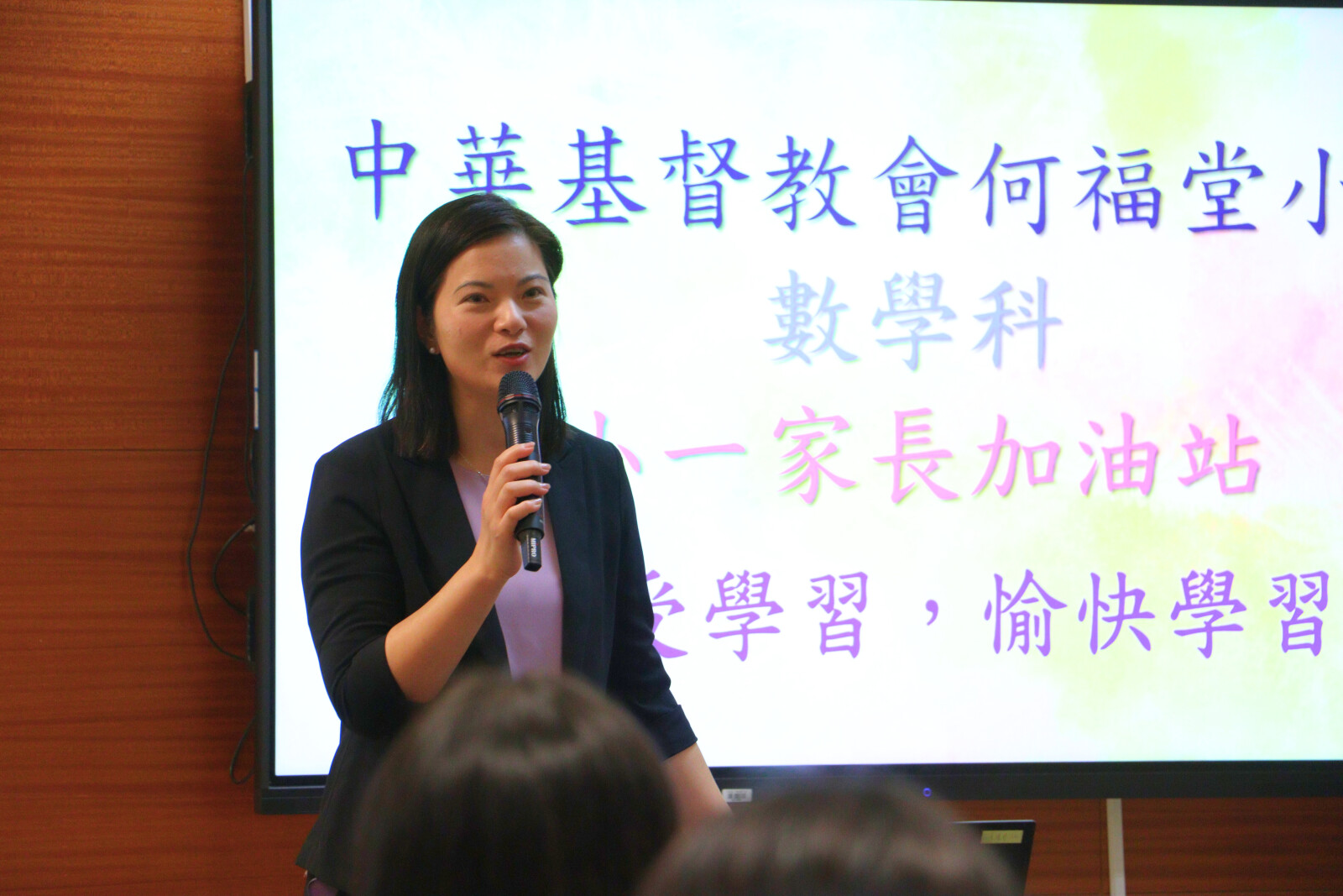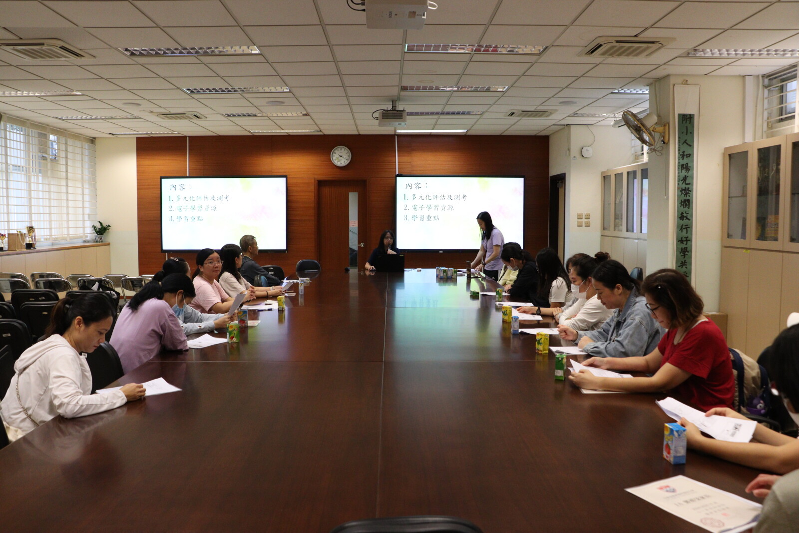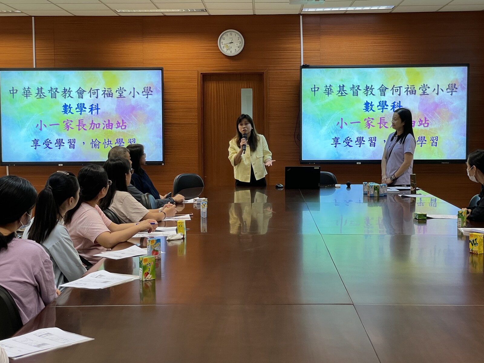 老師在會上分享平日小朋友的學習進度,教導家長如何教導小朋友,讓同學學得更好