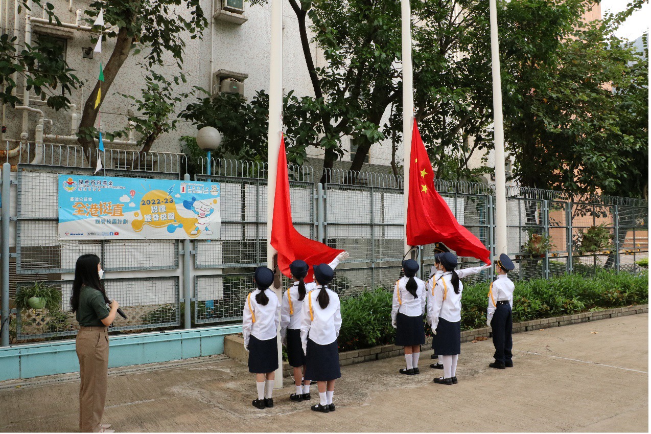本校為香港升旗總會小學隊伍P249隊。透過升旗儀式訓練、課堂、戶外學習活動、進行升旗儀式,讓學生學習護旗及升旗禮儀、步操訓練、認識國情及團隊合作精神。