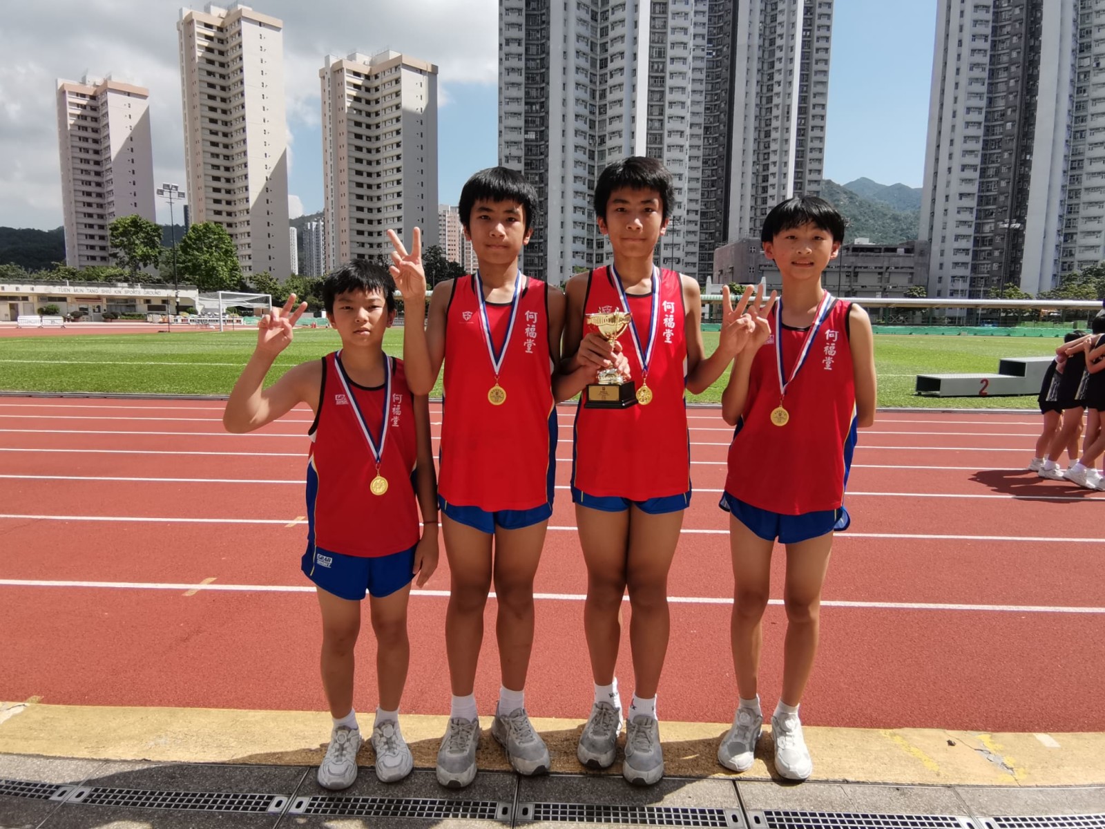 本校男女接力隊於今天(27-10-2023)參加新會商會中學接力邀請賽,憑著熟稔的默契和堅毅意志,分別榮膺男女子組冠軍,希望他們再接再厲,於屯門區小學校際田徑賽中再創佳績!