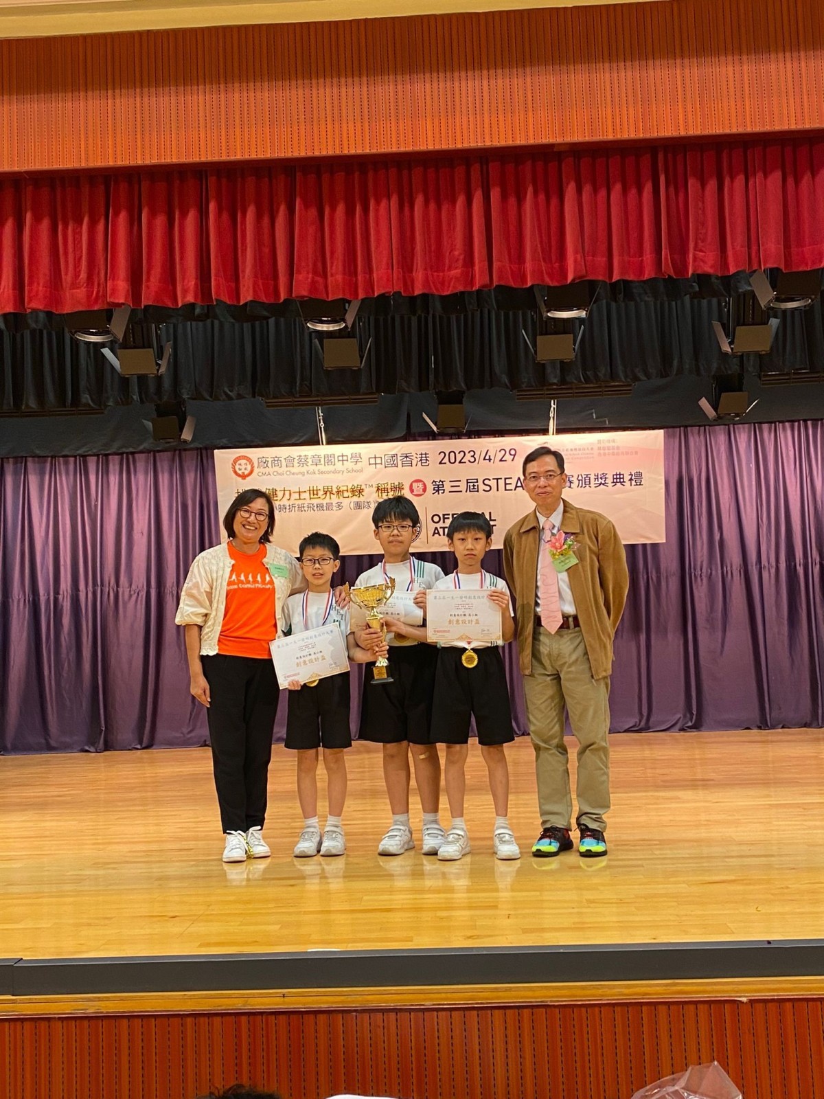 梓軒、廣堯和加晞更獲邀出席4月29日「世界紀錄大挑戰暨第三屆STEAM比賽頒獎典禮」。活動當天,他們與其他參與者一同挑戰「一小時折紙飛機最多(團隊)」的世界紀錄。最終,在一小時内合共折出21,294隻紙飛機,成功打破現時世界紀錄的12,026隻。
